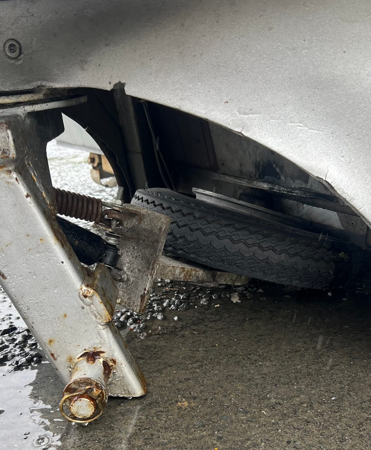 We're less than an hour into our trip when I heard bang, followed by a loud grinding sound, and sparks appearing in my rear view mirror.