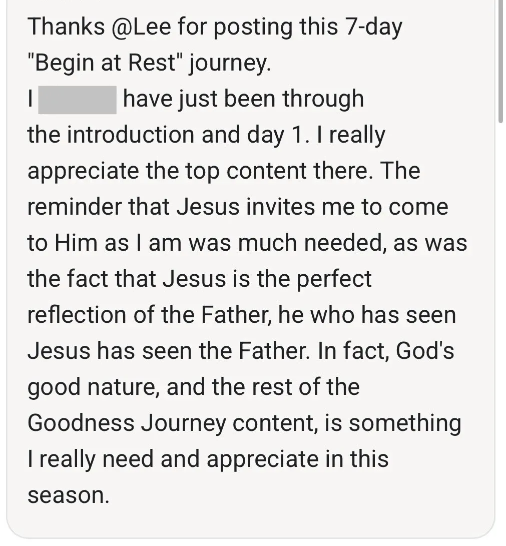 The Goodness Journey is where you leave striving behind and walk into a simple, steady life with God—living from peace, clarity, and real intimacy.