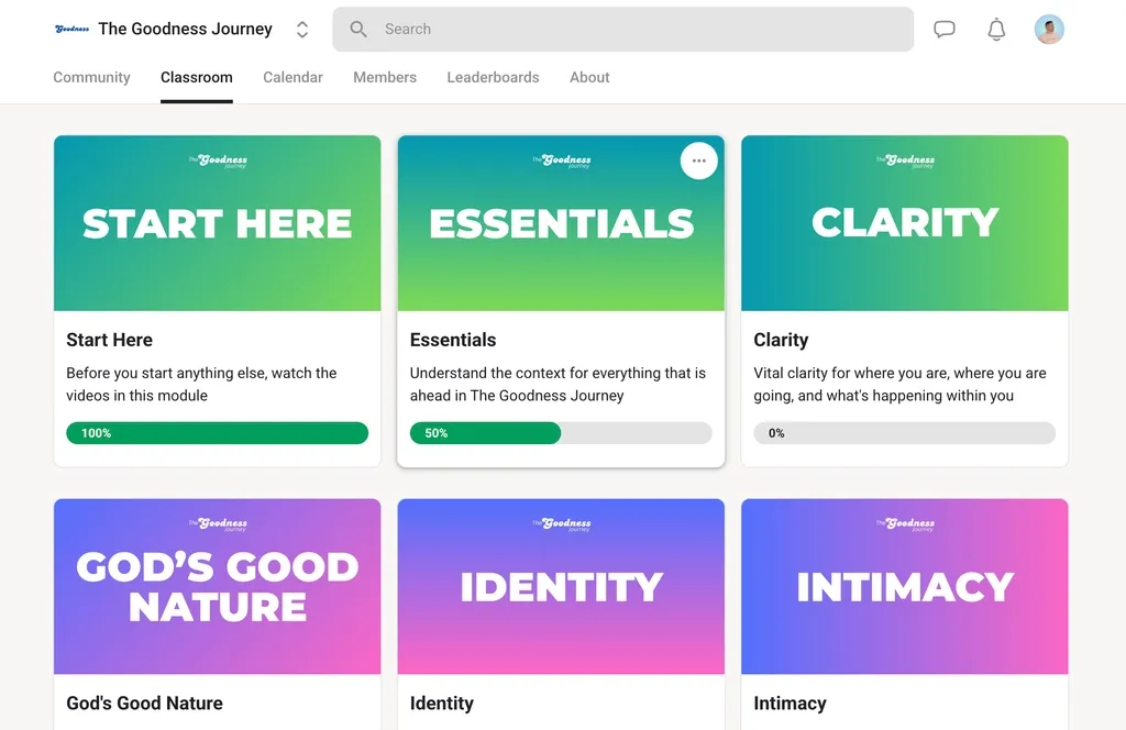 The Goodness Journey is completely self-paced. There’s no timeline to finish—members simply move at the pace of peace as truth becomes real in everyday life.